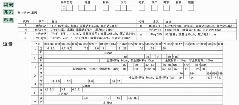 mRoy系列馬達(dá)驅(qū)動液壓隔膜計(jì)量泵選型編碼