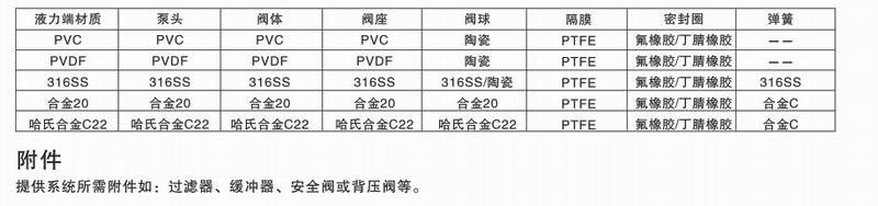 mRoy系列馬達(dá)驅(qū)動液壓隔膜計(jì)量泵泵頭主要部件材料