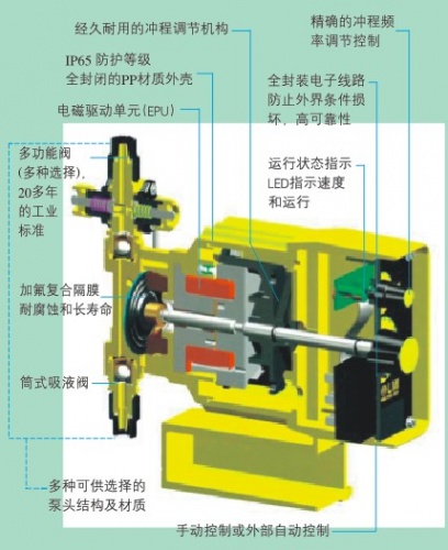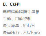 LMI電磁計量泵共有P,A(AA),B,C,E,H,J5等7個系列。用戶可根據(jù)流量、壓力、防爆等級、電源、自控等要求選用相應(yīng)系列計量泵。