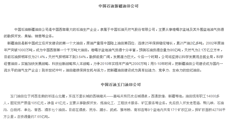中國石油天然氣集團公司(簡稱中國石油集團)是一家集油氣勘探開發(fā)、煉油化工、油品銷售、油氣儲運、石油貿(mào)易、工程技術(shù)服務(wù)和石油裝備制造于一體的綜合性能源公司。
